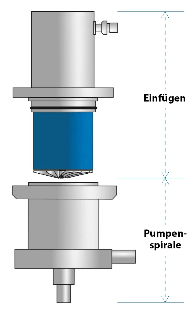 Das CryoFan-Konzept ermöglicht eine einfache Integration in einen Systemkryostaten. Es wird lediglich eine zentrale Bohrung mit einem Flanschmuster benötigt. Dieses Muster kann in den Kryostatflansch oder in einen ISO-K oder CF Blindflansch gefräst werden. Das Druckgehäuse mit der Pumpenspirale wird in den Kryostat eingebaut und die Kreislaufleitungen werden angeschlossen. Der Motor mit Welle und Laufrad kann nun von außen montiert werden. Das bedeutet, dass die komplette Laufradeinheit ausgebaut werden kann, ohne das Vakuum der Anwendung zu unterbrechen.