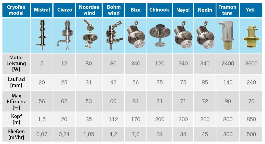Das Laufrad wird von einem hochtourigen Elektromotor angetrieben, der das Gas in Bewegung setzt. Beim CryoFan sind alle Komponenten in einem Gehäuse untergebracht, wobei der Motor im Druckgasraum installiert ist. Bei dieser Lösung gibt es keine rotierende Dichtung, so dass keine Leckage möglich ist.